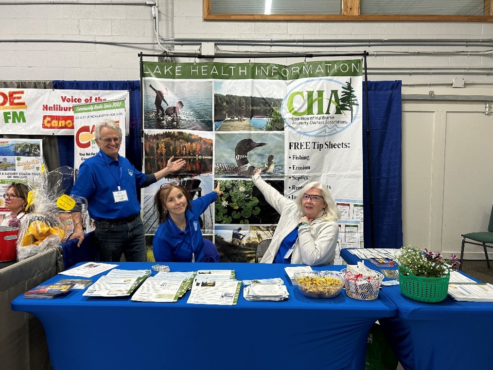 The CHA rents and staffs a booth at the annual Haliburton Home show to provide property owners that do not belong to a lake association with the information they need to protect our lakes.